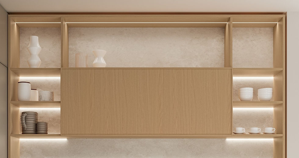 מערכת חיפוי קיר חדשנית, עם מסגרת אלומיניום אחורית והיקפית ,ניתן להתקין במסילות: מדפים, ווי תלייה, מתקן לכוסות יין ומתקנים נוספים.